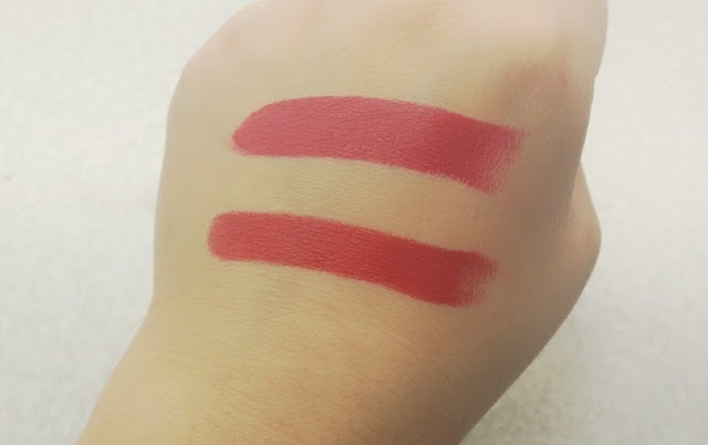Beside the one with pink packaging from their "Pink Rumor" edition, the others also have a different packaging: it is now matte! I think they've changed to matte packaging for matte and dangerous matte lipstick since the dangerous matte finish came out. So now their lipsticks (not include other lips products) have glass (sheer), creamy, regular (satin), matte, and dangerous matte finishes.